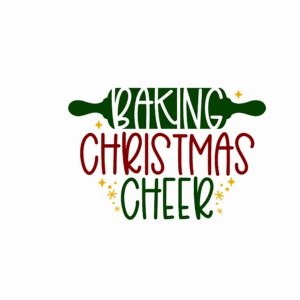 Baking Christmas Cheer Quote SVG A holiday baking SVG that says “Baking Christmas Cheer,” featuring a rolling pin and sparkles. Ideal for Christmas aprons, cookie baking shirts, kitchen towels, pot holders, and Cricut baking projects.