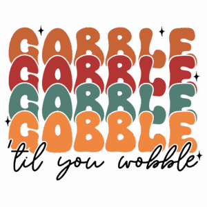Gobble Til You Wobble SVG Colorful retro Thanksgiving SVG design with layered groovy text that says “Gobble Gobble Gobble ’Til You Wobble,” perfect for festive shirts, signs, and holiday crafts made with Cricut or Silhouette.