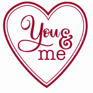 You & Me Heart Valentine SVG A sweet Valentine SVG with “You & Me” written inside a heart outline. Simple and timeless, this design works beautifully for couples’ projects, cards, apparel, and keepsake crafts.